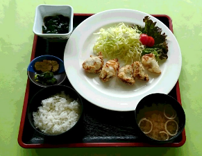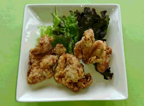 男鹿半島の伝統の魚醤・しょっつるをメインの調味料とし、衣には秋田県産の米粉を使用した鶏の唐揚げです。
